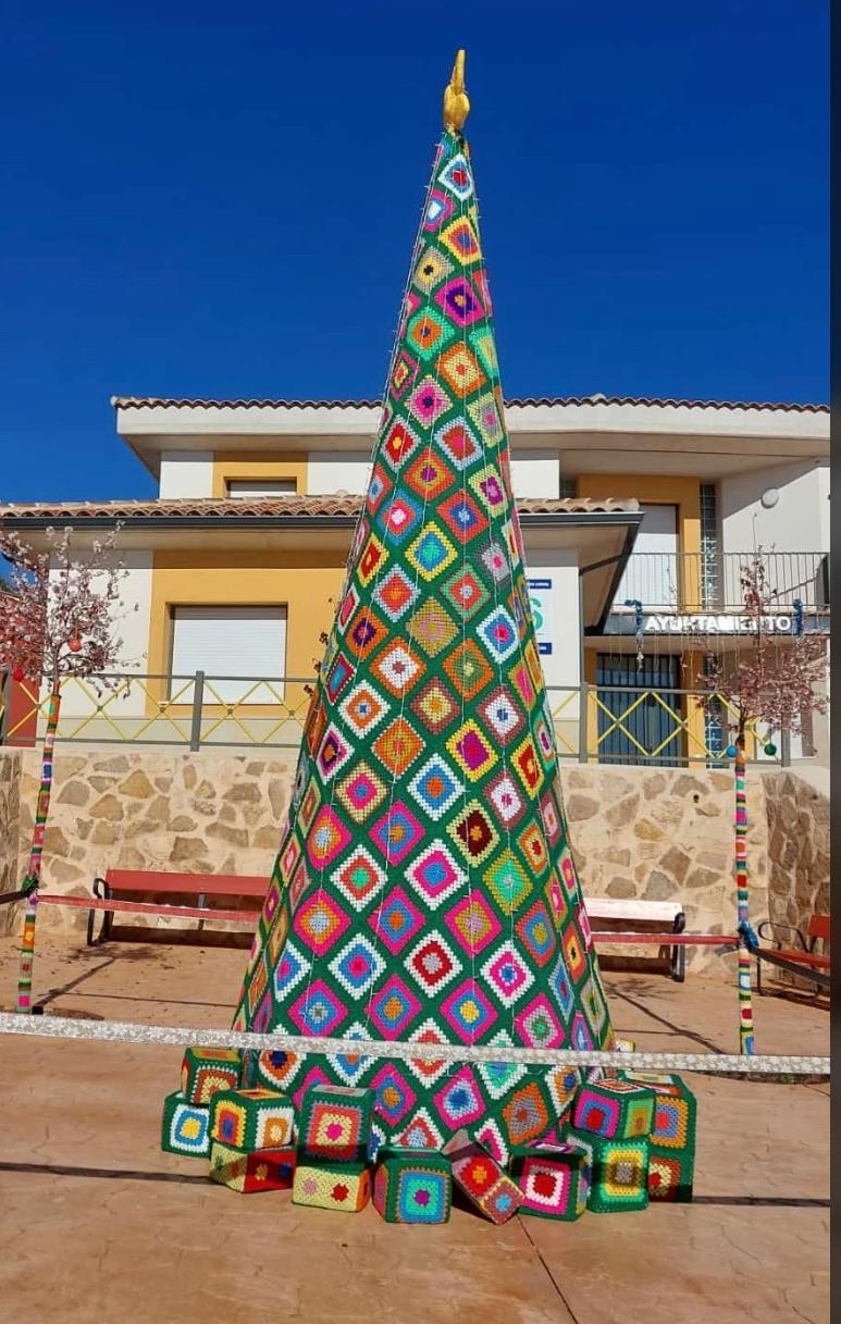 La Asociación de Jubilados «Los Girasoles» ha convertido en tradición su árbol navideño de ganchillo, una impresionante obra colectiva que este año ha alcanzado dimensiones todavía mayores, con los miembros de la asociación trabajando durante todo el año para crear los cientos de cuadraditos que dan forma al árbol. Este gigante de hilo se expone en la puerta del Ayuntamiento, sumando color y creatividad a las festividades.